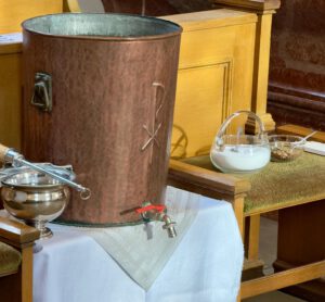 Am Ende des Gottesdienstes segnete Pater Zbigniew Dreikönigswasser, Salz, Kreide und Weihrauch.