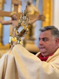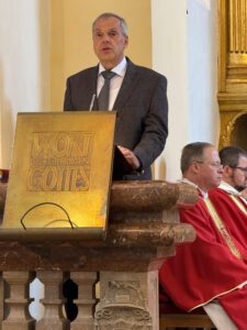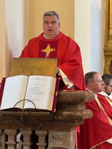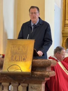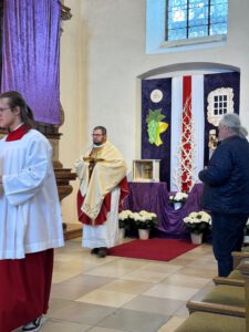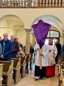 In der Predigt lenkte Pater Jakob den Blick auf Probleme der Gegenwart: auf die vielen bekannten und auch weniger bekannten Kriege, auf Gewalt und politische Spannungen. Auch das persönliche Leid sprach er an und stellte fest, dass es wohl Gottes Heilsplan gewesen sei, dass sein Sohn Jesus Christus diesen brutalen Tod erleiden musste. Denn in seinem Leiden sei „Christus allen nahe, die Unrecht, Verfolgung oder Krankheit erleiden“, und das schenke die Kraft, das eigene Kreuz im Vertrauen auf die Auferstehung anzunehmen. Zugleich betonte Pater Jakob, dass dies die Christen nicht davon entbinde, Unrecht immer wieder anzuklagen und sich für Recht und Gerechtigkeit einzusetzen.