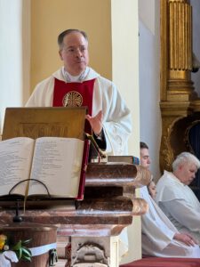 In seiner Predigt sprach Professor Dr. Stefan Mückl über die Lesung aus der Apostelgeschichte, über den ersten Korintherbrief des Apostels Paulus sowie über das Evangelium von der Begegnung des auferstandenen Jesus mit den beiden trauernden Jüngern auf dem Weg nach Emmaus.